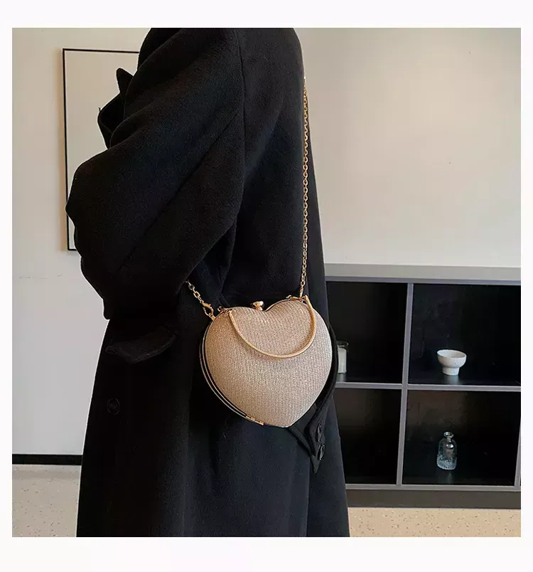 Discover the epitome of elegance with our Heart-Shaped Evening Clutch Bag. This stunning accessory is designed to add a touch of glamour to any outfit, making it the perfect companion for your next party or special event. Its unique heart shape, combined with a luxurious shine, ensures you’ll stand out in any crowd.