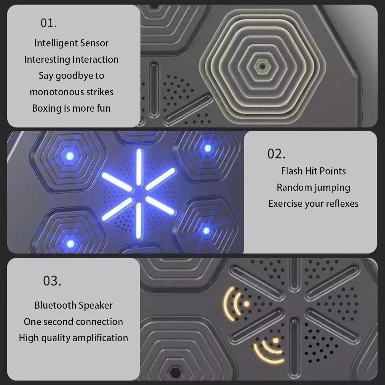 • Music Synchronization: Watch as the LED lights dance in sync with your music, adding rhythm and energy to your boxing sessions.